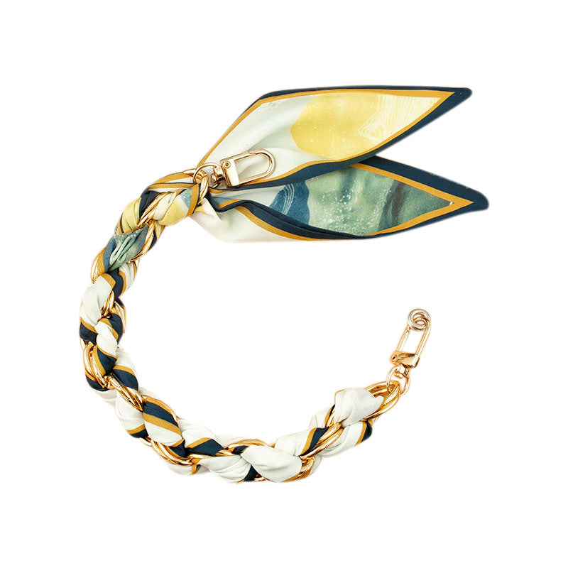 Stylish, functional, and versatile, the Gold Phone Chain with Scarf is the ultimate hands-free accessory. This gold-plated phone chain is threaded with a chic scarf, offering a lightweight and fashionable way to keep your phone close. Designed to be multi-functional, it can also be attached to your favorite handbag for added convenience. The swivel mechanism ensures easy accessibility, while the ultra-thin phone patch fits seamlessly between your phone and case, connecting through the charging port without interfering with charging. A perfect blend of practicality and style for life on the go.
