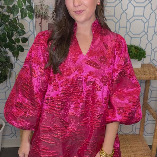 Turn heads in this stunning pink dress that's equal parts bold and beautiful. The charming balloon sleeves add a playful touch that takes this look from classic to unforgettable. Get ready for compliments!