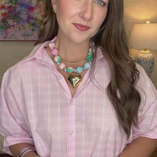 The Pink Pane Top is an oversize button-up short sleeve top featuring relaxed drop sleeves and a subtle white stripe detail. The refined stripe adds visual interest without overwhelming the look. An essential wardrobe staple for any season.