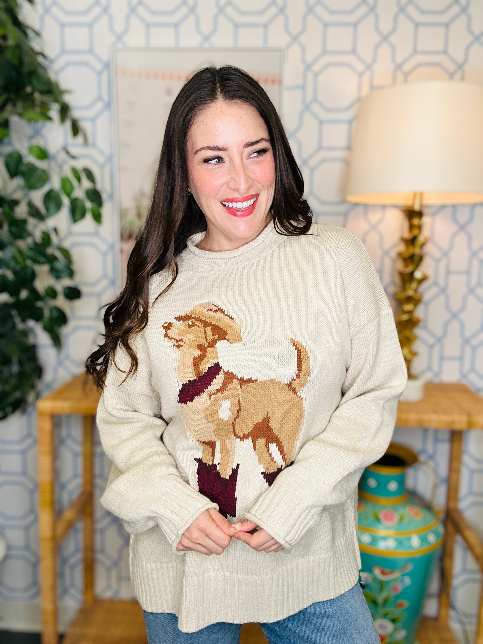 The Pup Sweater is pure joy in knit form. This cream oversized sweater features an adorable dog detail that's guaranteed to get compliments and smiles. Soft, slouchy, and oh-so-huggable, it's the kind of piece that feels like a warm embrace. Perfect for dog lovers and anyone who appreciates a little whimsy in their wardrobe. Throw it on with your favorite jeans and you're ready to take on the day with personality to spare.