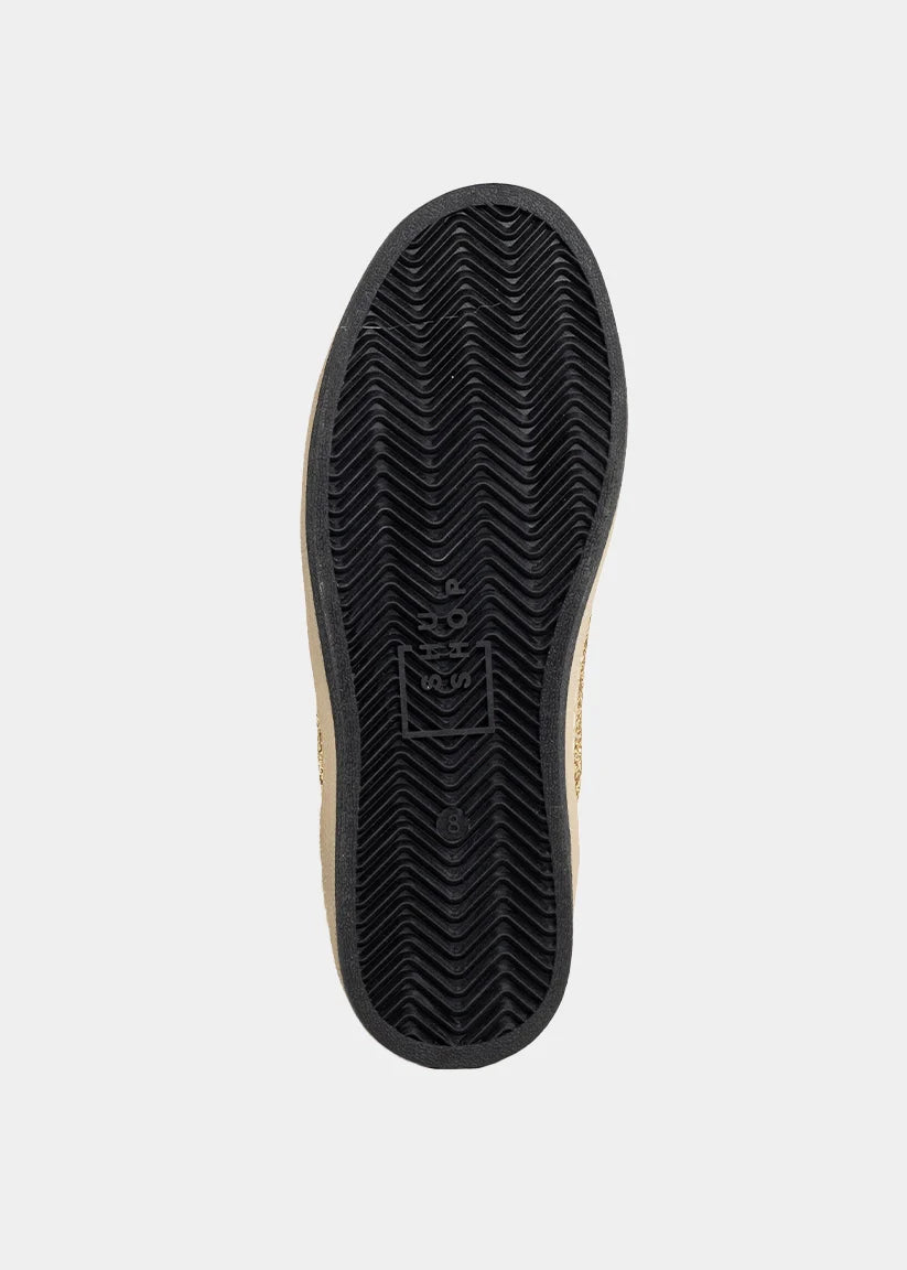 When bold meets glam. The QUINN in Leopard Hair is anything but shy-this sneaker blends faux suede, animal print accents, and a full gold glitter side panel for a head-turning mix of textures. Designed for little trendsetters who love to sparkle, it features soft linings, a flexible sole, and an easy lace-up closure for everyday comfort. Whether they're running wild or showing off their sparkle, this pair brings the fun with every step.
