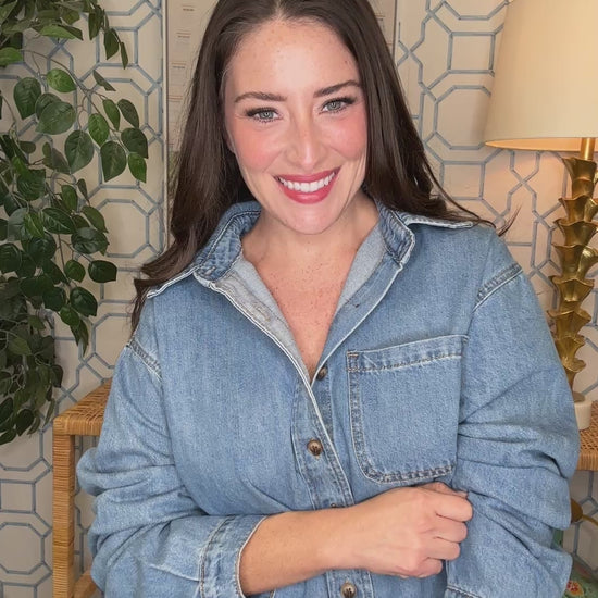 Introducing The Rosedale Top—a denim button-up that's got that perfect lived-in edge. The raw hem adds just the right amount of cool-girl attitude while keeping things casual and approachable. Button it up for a polished look, tie it at the waist, or throw it over a dress for instant texture and dimension. Versatile, timeless, and endlessly styleable, this denim staple is about to become your new favorite reach-for piece.