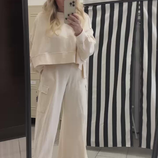 Embrace your free-spirited side with the Sarah Maria Set. The oversized cropped top boasts dreamy bubble sleeves for effortless boho vibes, while the cargo-inspired wide-leg bottoms add flow and drama to every step. Designed with a raw hem, this set is easily customizable for any height—making it perfect for both tall and petite fashion lovers. Soft, comfortable, and utterly charming, this trio of colors will have you turning heads and soaking up compliments wherever you go. Get ready to fall in love with your new wardrobe favorite!