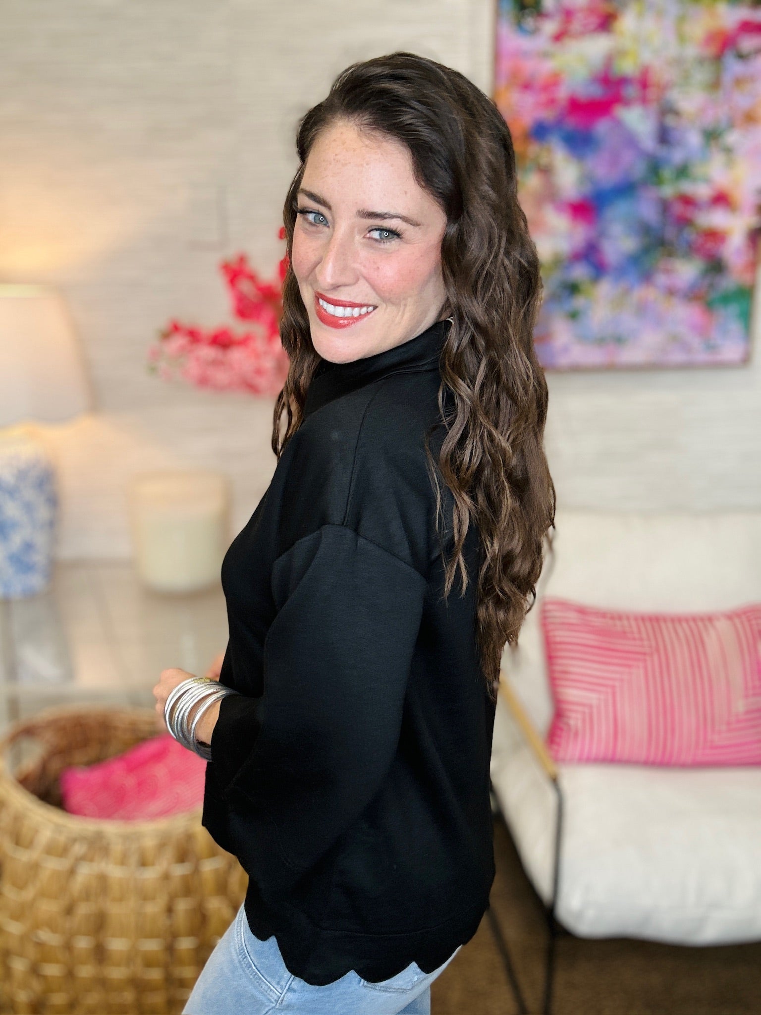 The Scout Top in 2 Colors is a cute and casual favorite with playful scallop trim detailing on the 3/4-inch sleeves and hem. Its flattering V-neckline adds a fun touch that’s perfect for easygoing style with a little extra flair.