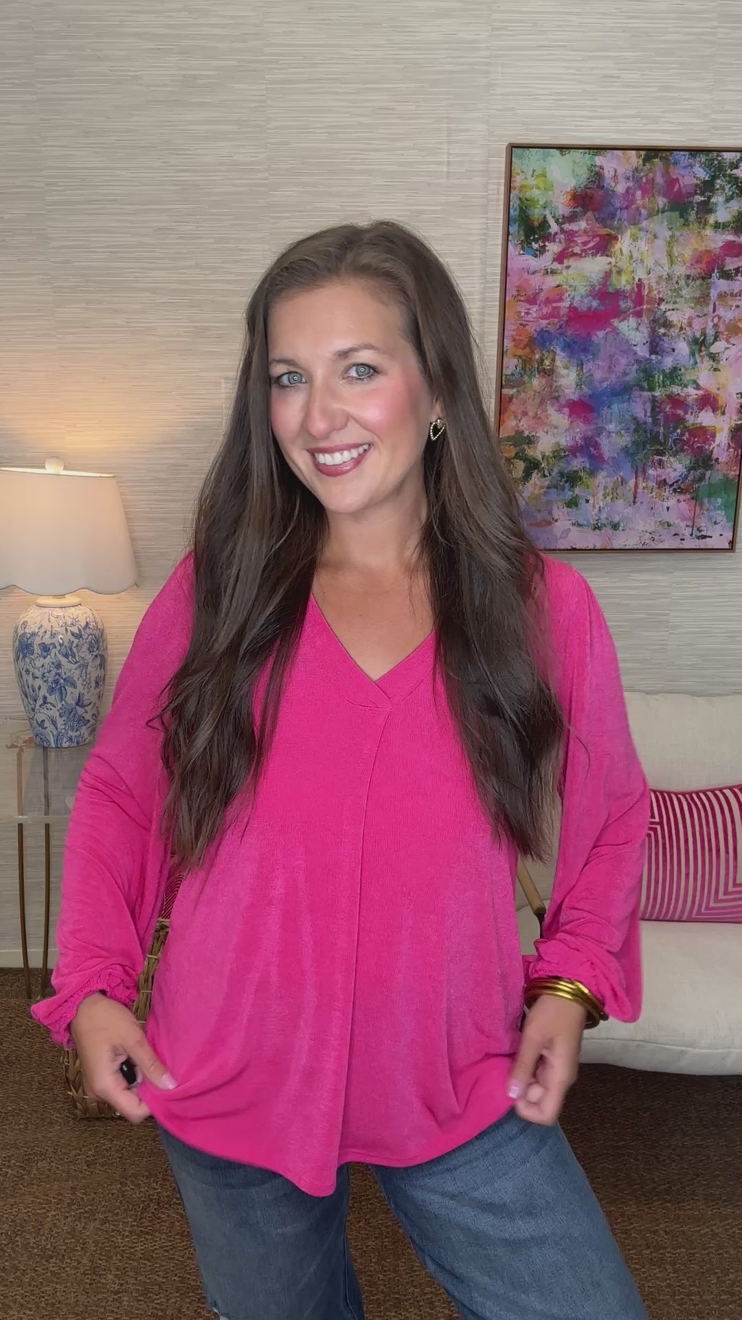 The Sew Feminine Blouse adds a playful touch to your wardrobe with its flattering V-neck and charming long bubble sleeves. Available in four vibrant colors, it’s perfect for effortlessly blending comfort and style with a fun, flirty vibe.