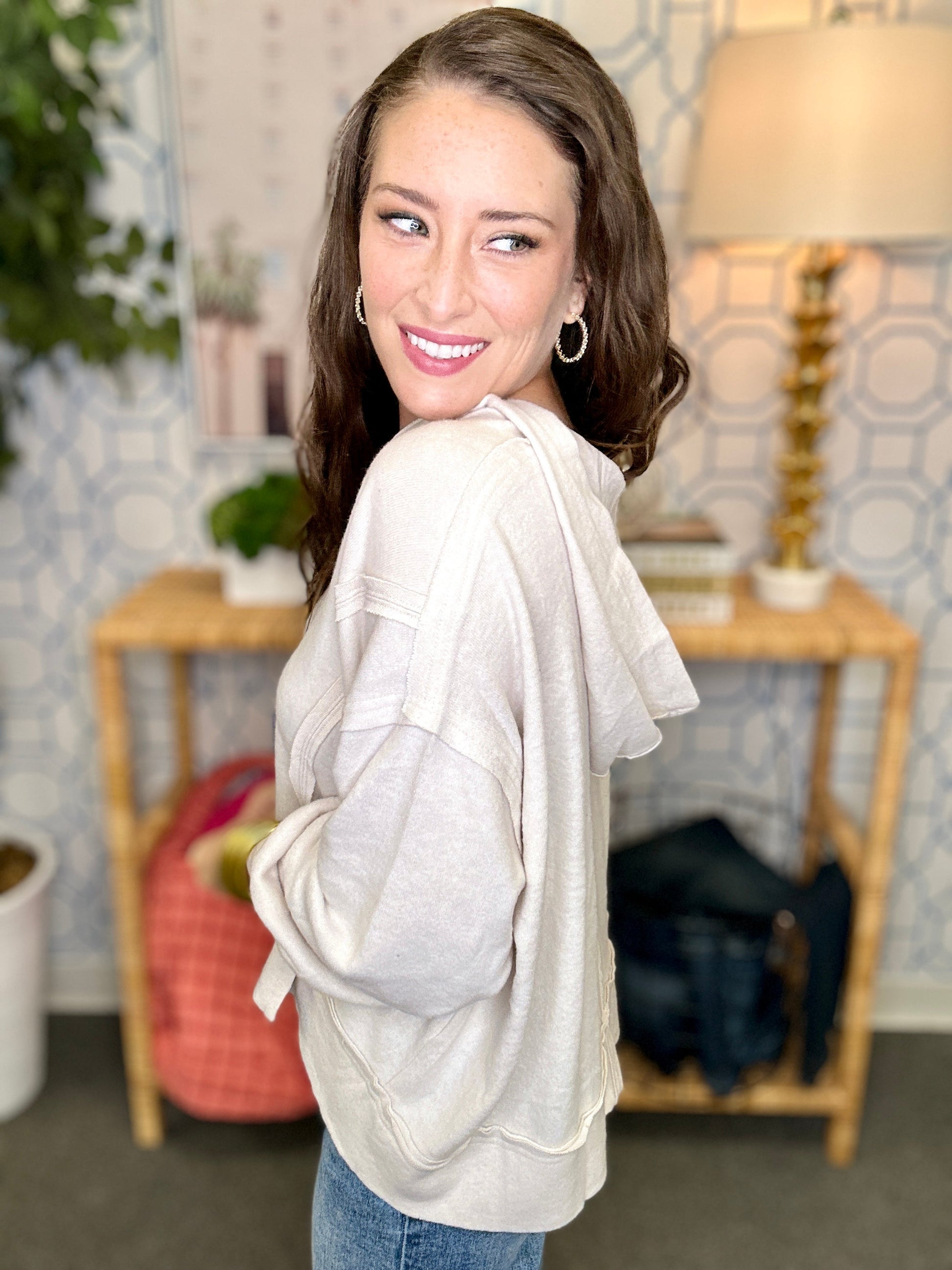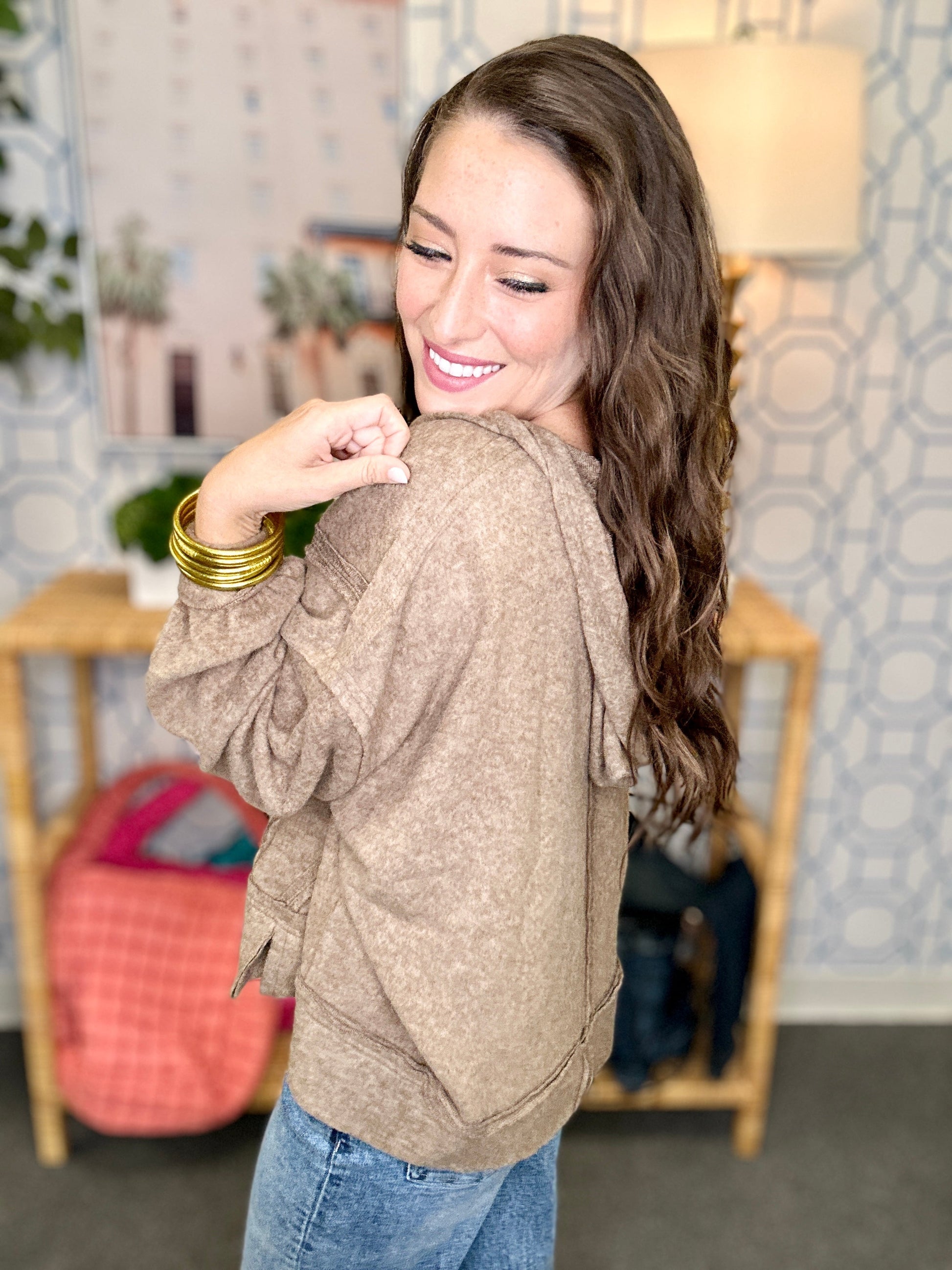 Model Halley is a size 4, wears a size small in tops and wore a S/M in this hoodie.