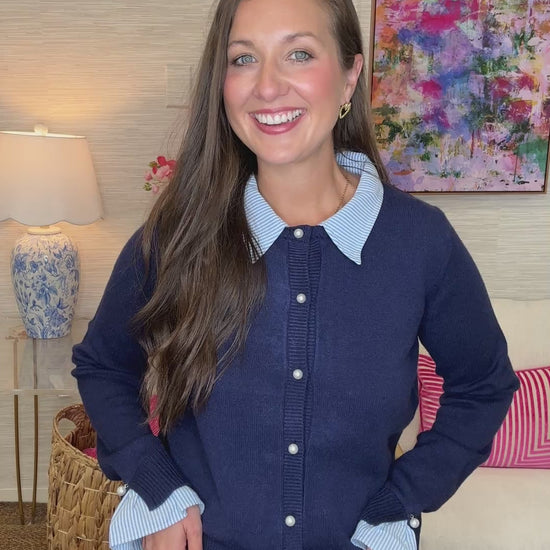 The Striped Collar Sweater Top adds a playful twist to classic knitwear with its crisp collar and elegant pearl buttons. Comfortable and chic, it’s perfect for bringing a fun, polished vibe to any outfit.