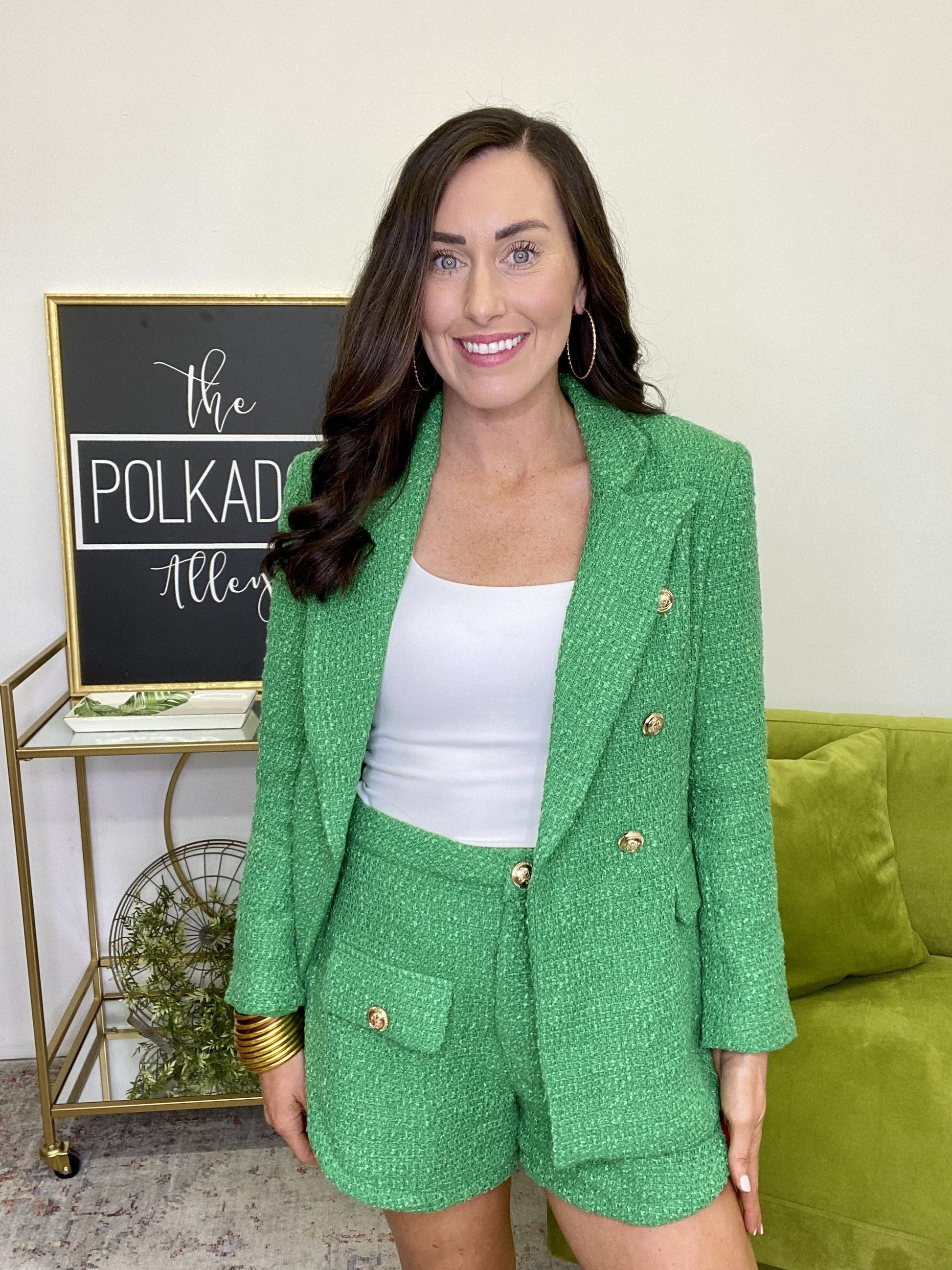 This blazer combines a timeless classic style with today's trends! As Ashley has said before, all styles come back around! So, get back on board with this beautiful style blazer by Buddy Love!!