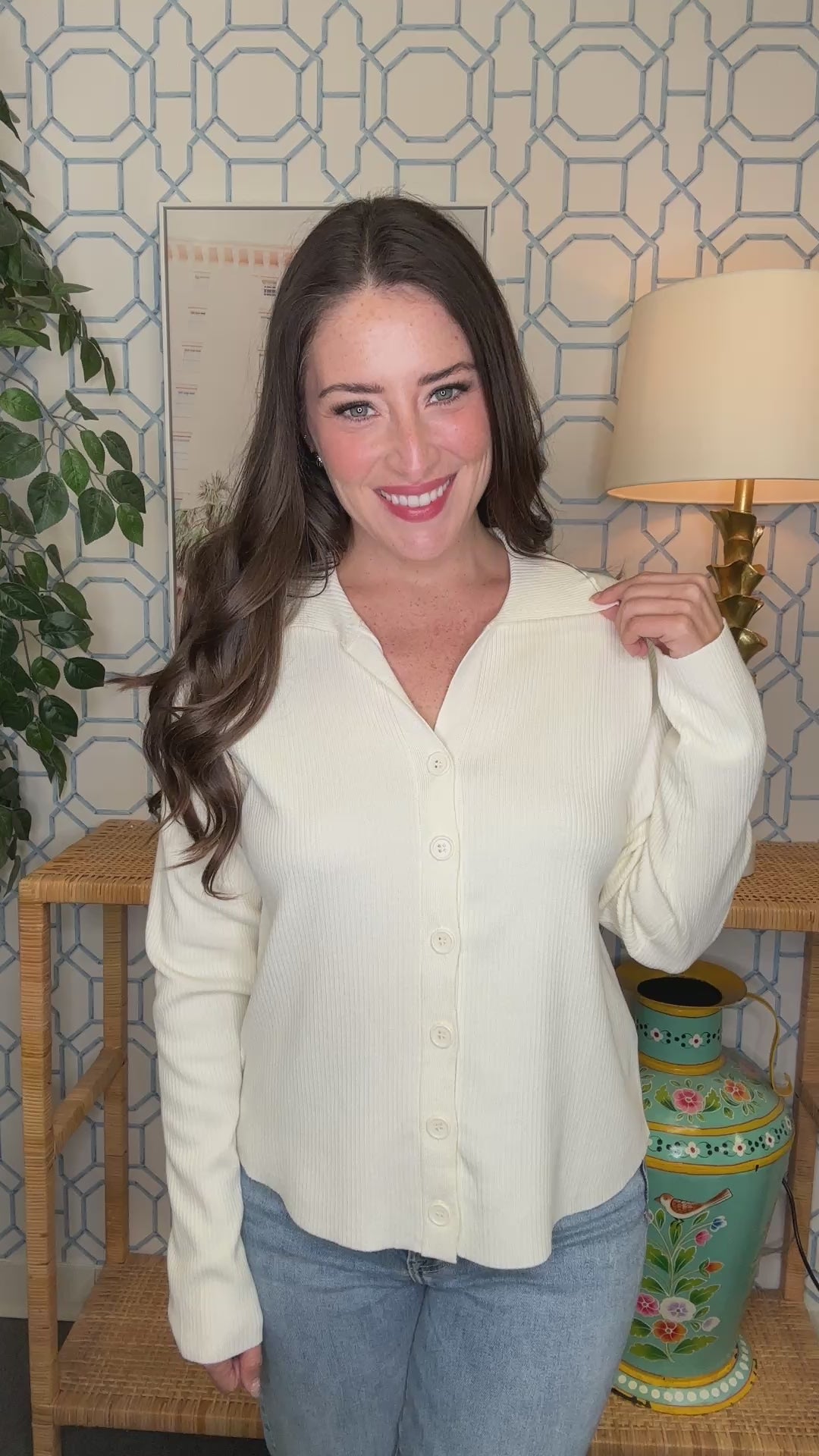Meet The Wish Knit Top—a cream button-up that's equal parts elegant and easy. This long sleeve knit top features a classic button-front design that lets you style it however you like. Wear it buttoned up for a polished look, leave it open as a layering piece, or tie it at the waist for a playful twist. Soft, versatile, and endlessly wearable, it's the kind of timeless piece that deserves a permanent spot in your everyday lineup.