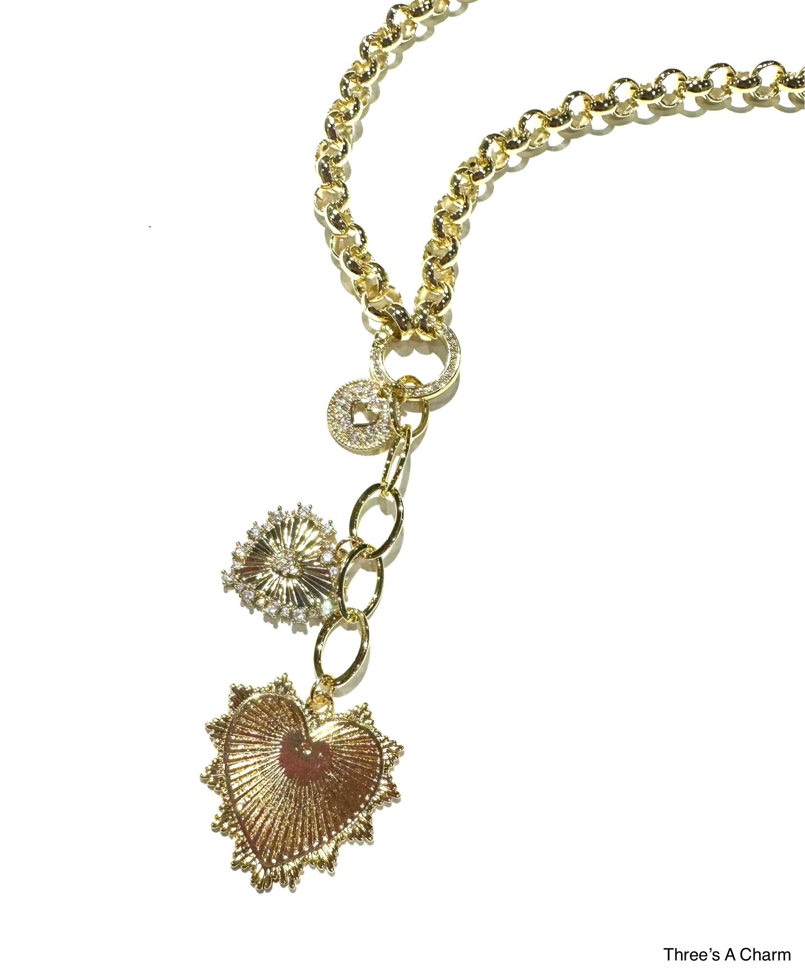 16" +2" Extension Rolo Chain Necklace With Triple Heart Drops
